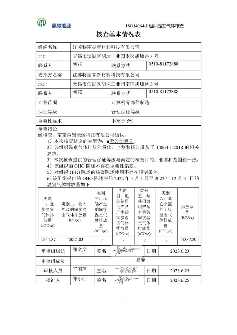 溫室氣體核查報(bào)告